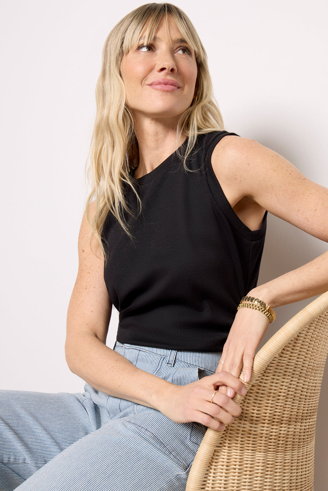 Perfect for dressing up or keeping casual. the versatile Lilly tank by Michael Stars is crafted in soft rib knit fabric and features a crewneck silhouette with ruched sides for a flattering touch.