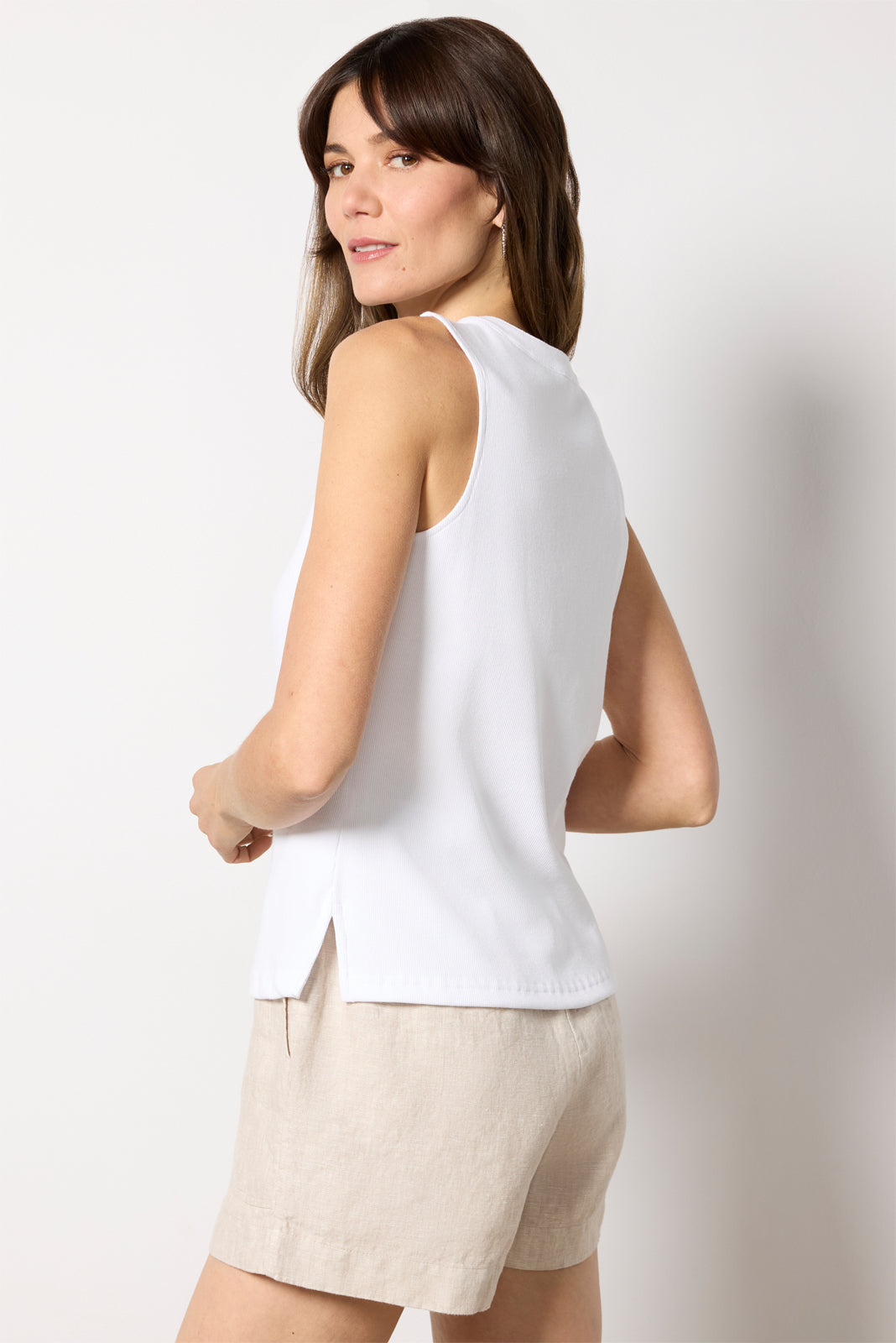 Perfect alone or layered. this versatilehenley tank top by Rails is crafted in ribbed Pima cotton-blend fabric and features a sleeveless silhouette. half button placket. and side split hem.