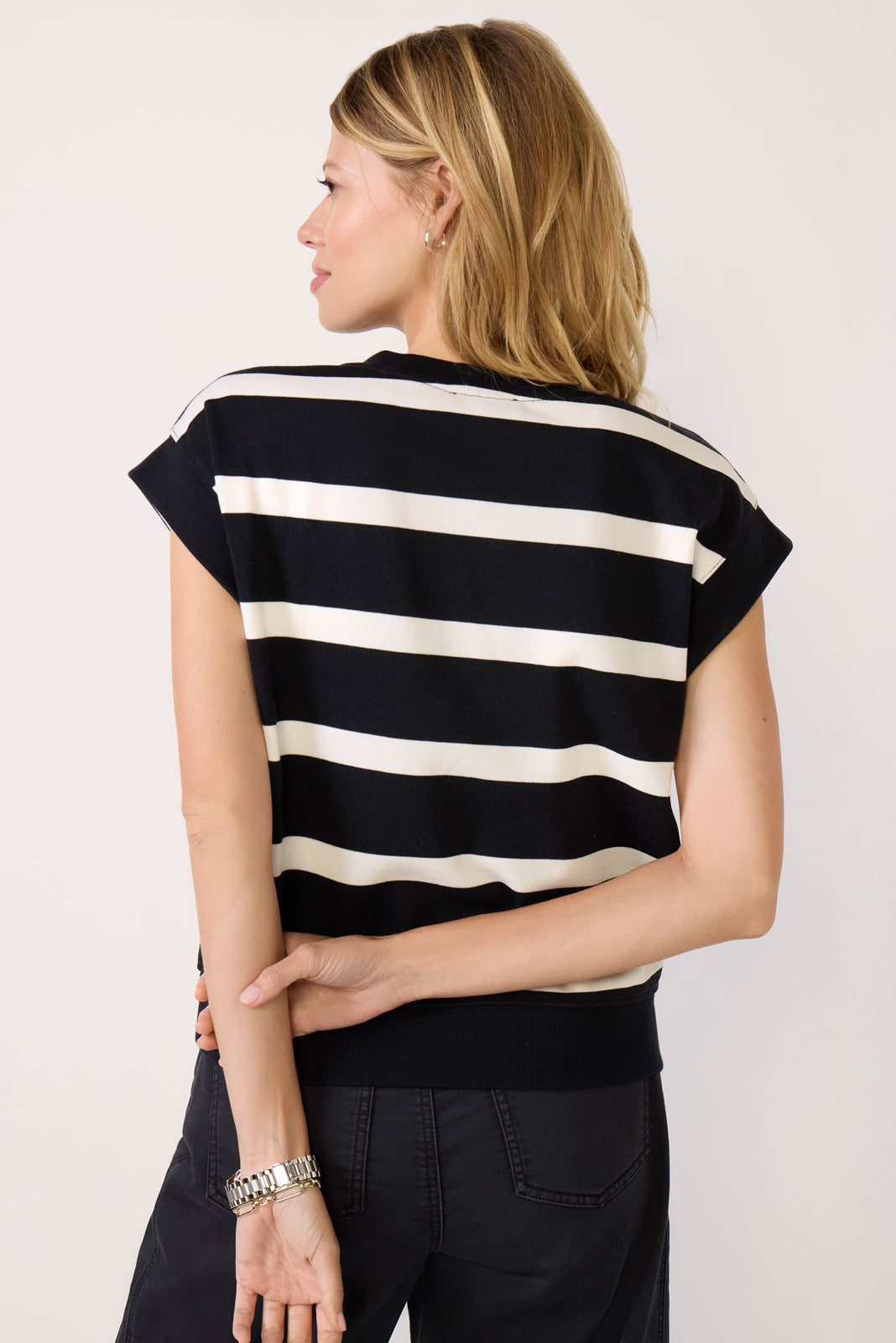 Perfect for everyday wear. this striped sweatshirt by Ysfabd features a crewneck silhouette with cap sleeves and a banded hem.