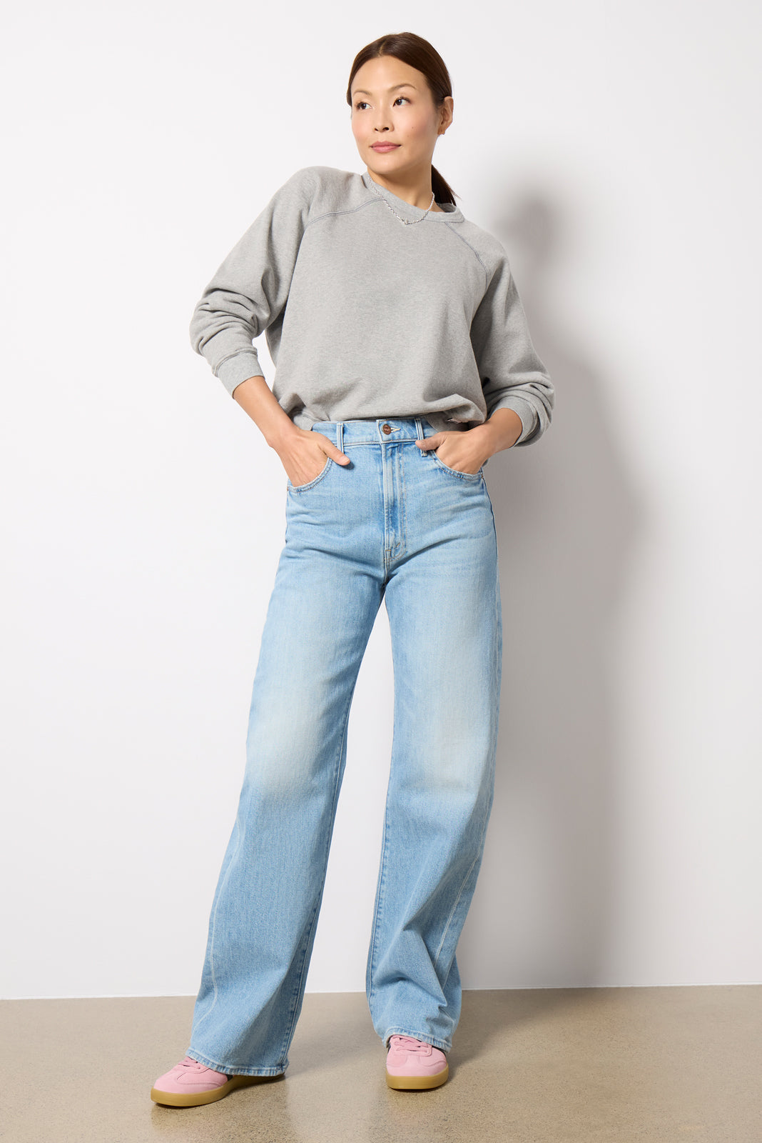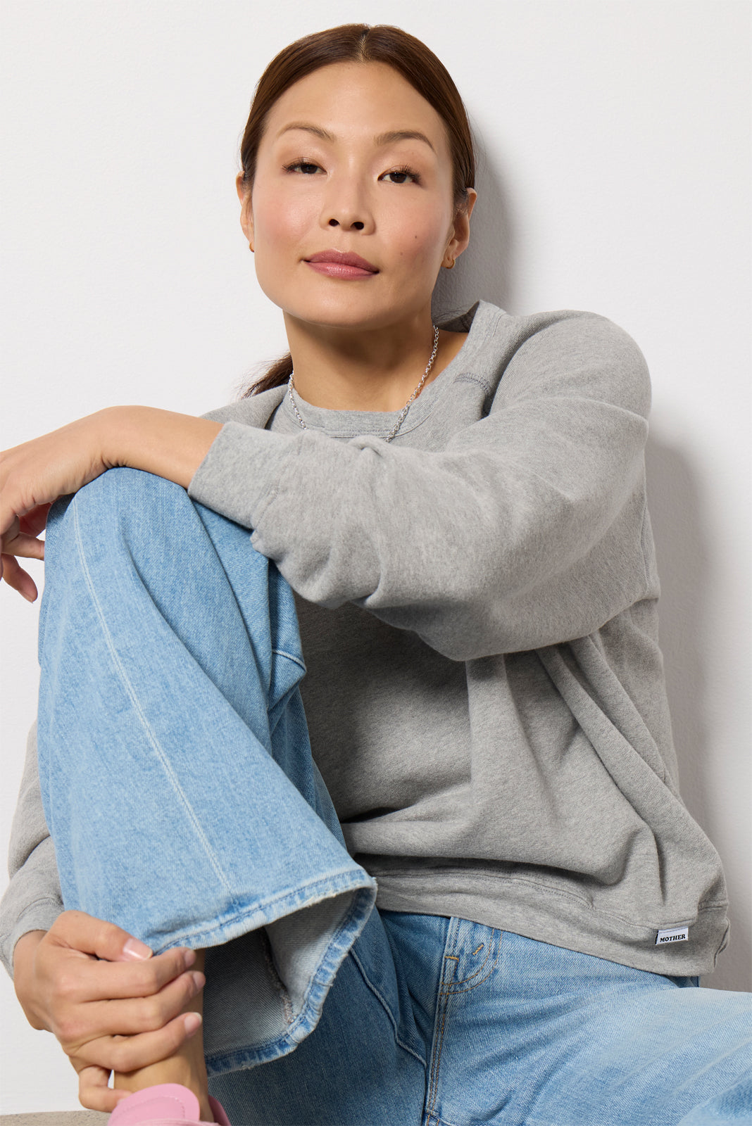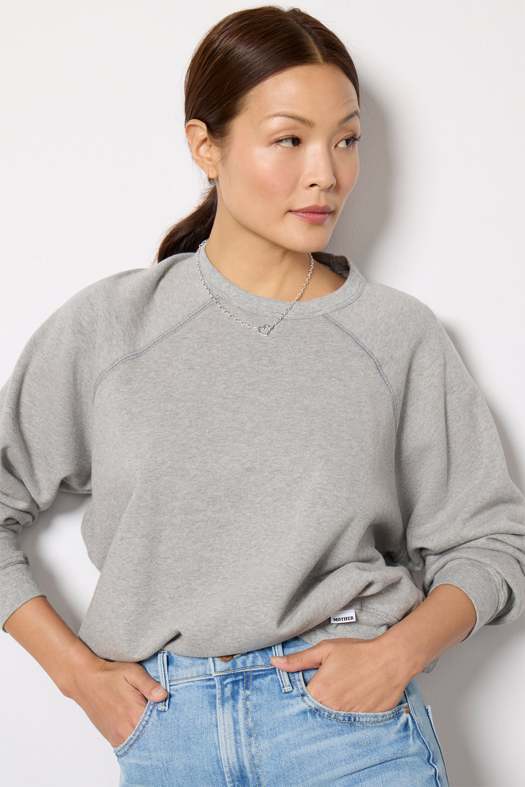 Stay comfy-chic in the Biggie Concert sweatshirt by MOTHER. Crafted in soft. comfortable cotton. this raglan pullover features a crew neckline. ribbed trim. andan easy. relaxedfit.