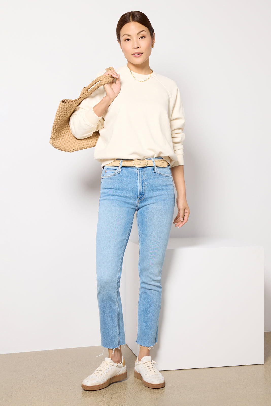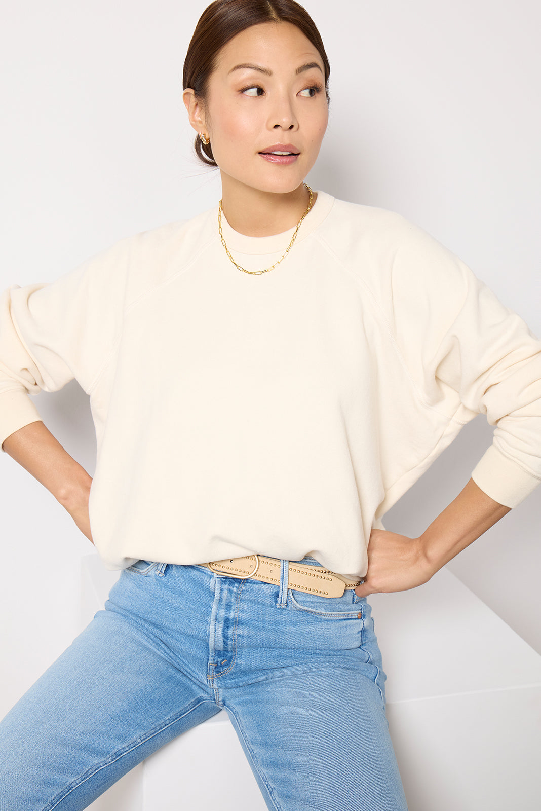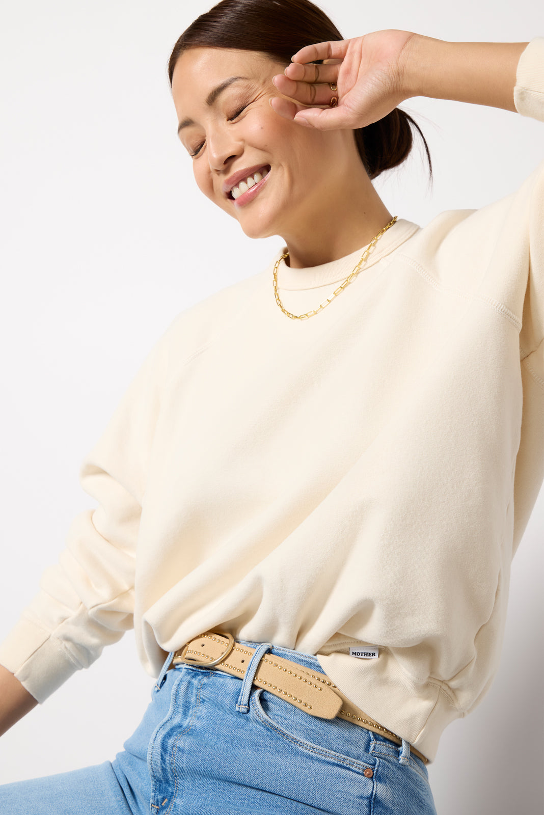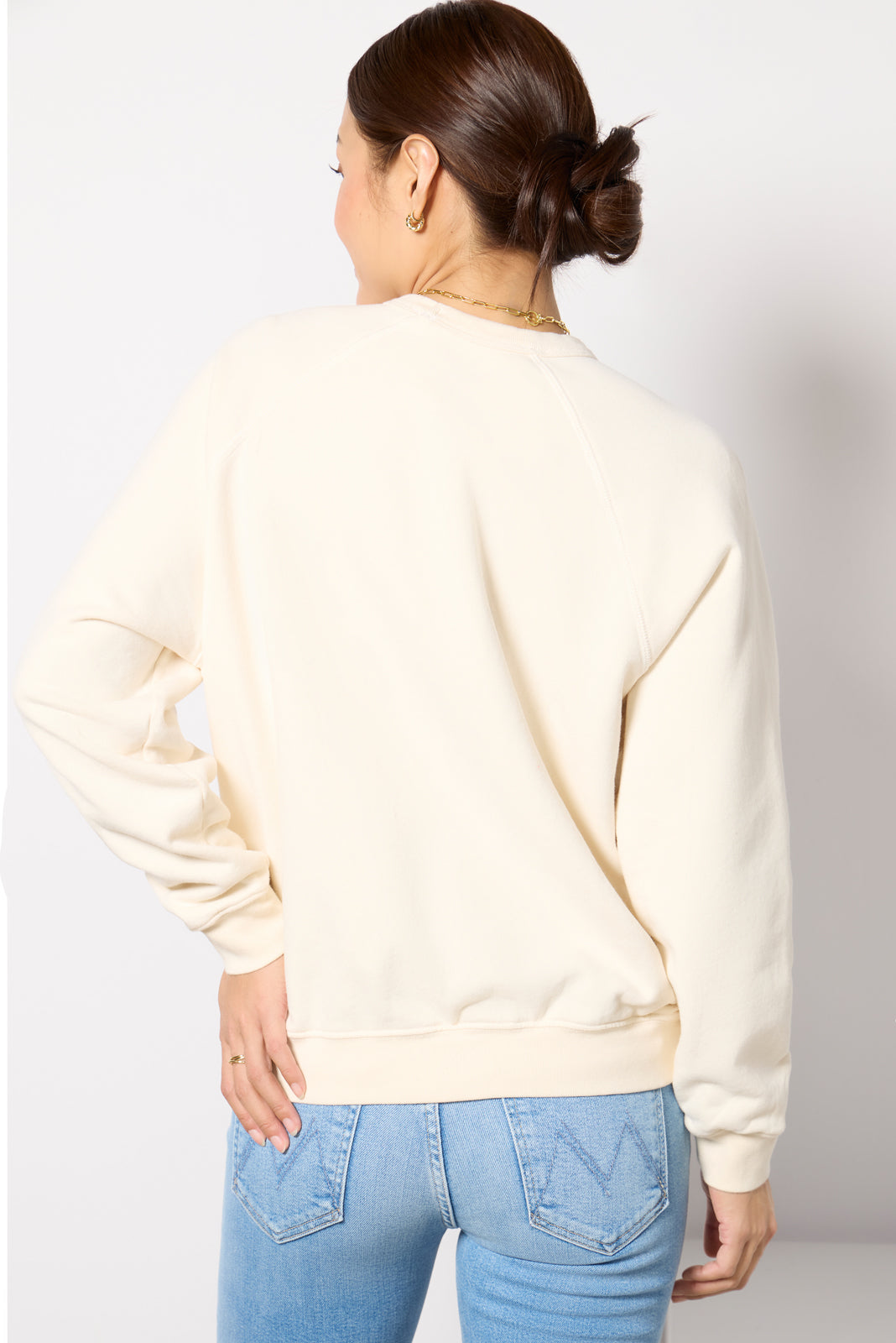 Staycomfy-chic in the Biggie Concertsweatshirt byMOTHER. Crafted in soft. comfortable cotton. this raglanpullover features a crew neckline. ribbed trim. and an easy. relaxed fit.