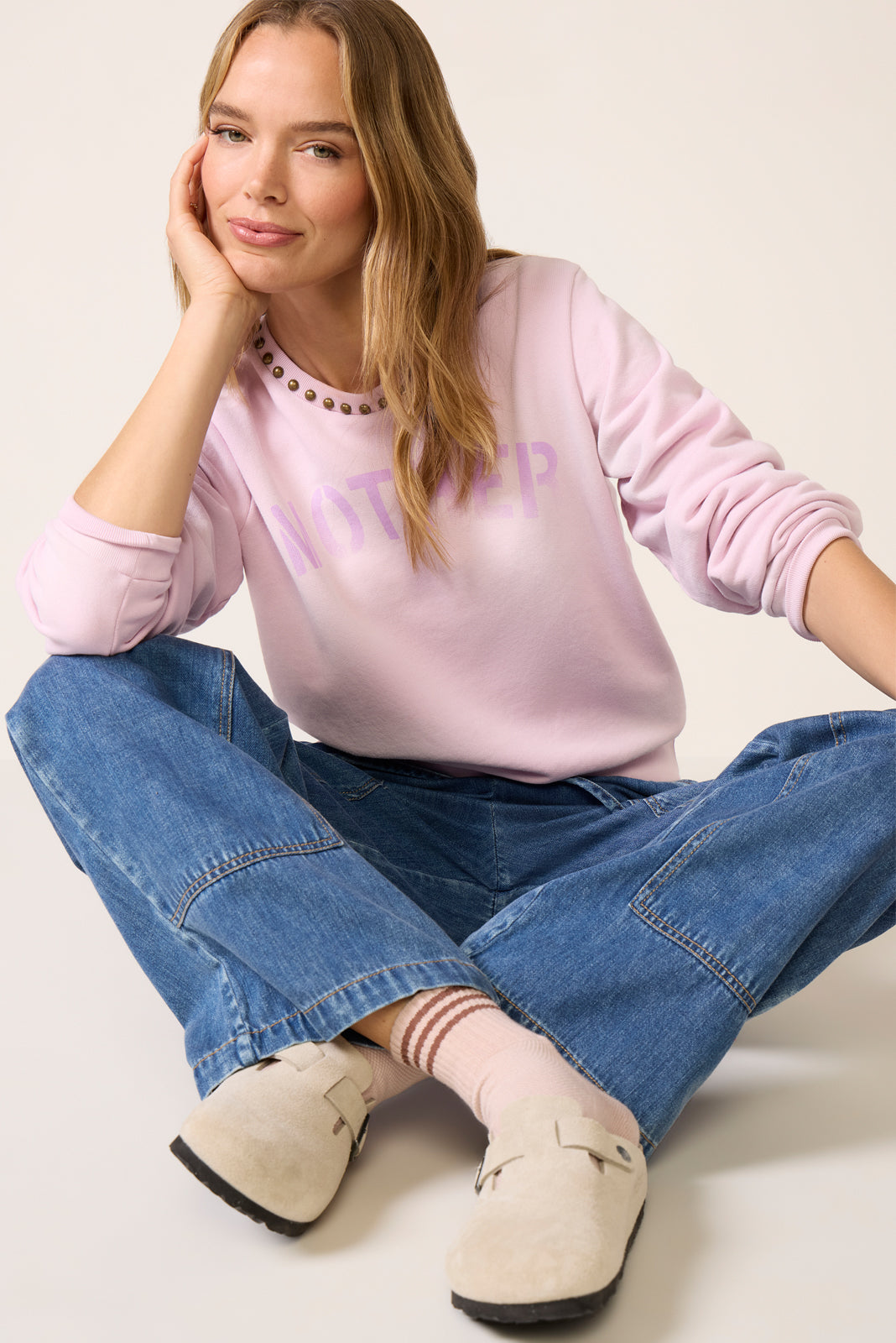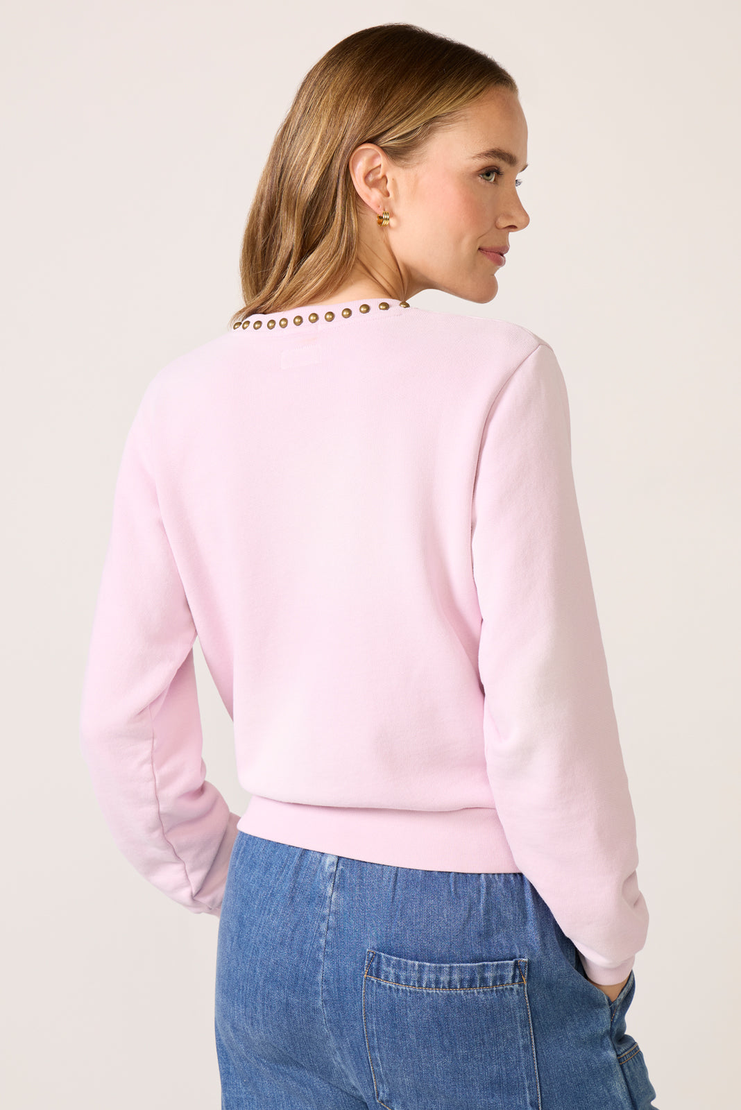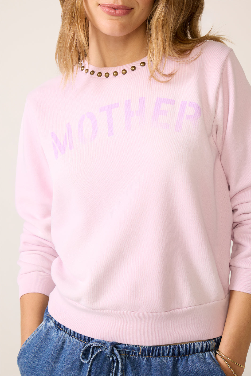 Step into the weekend in style with The Camper pullover by MOTHER. featuring a studded crew neckline. relaxed fit. and “Mother” lettering across the front.