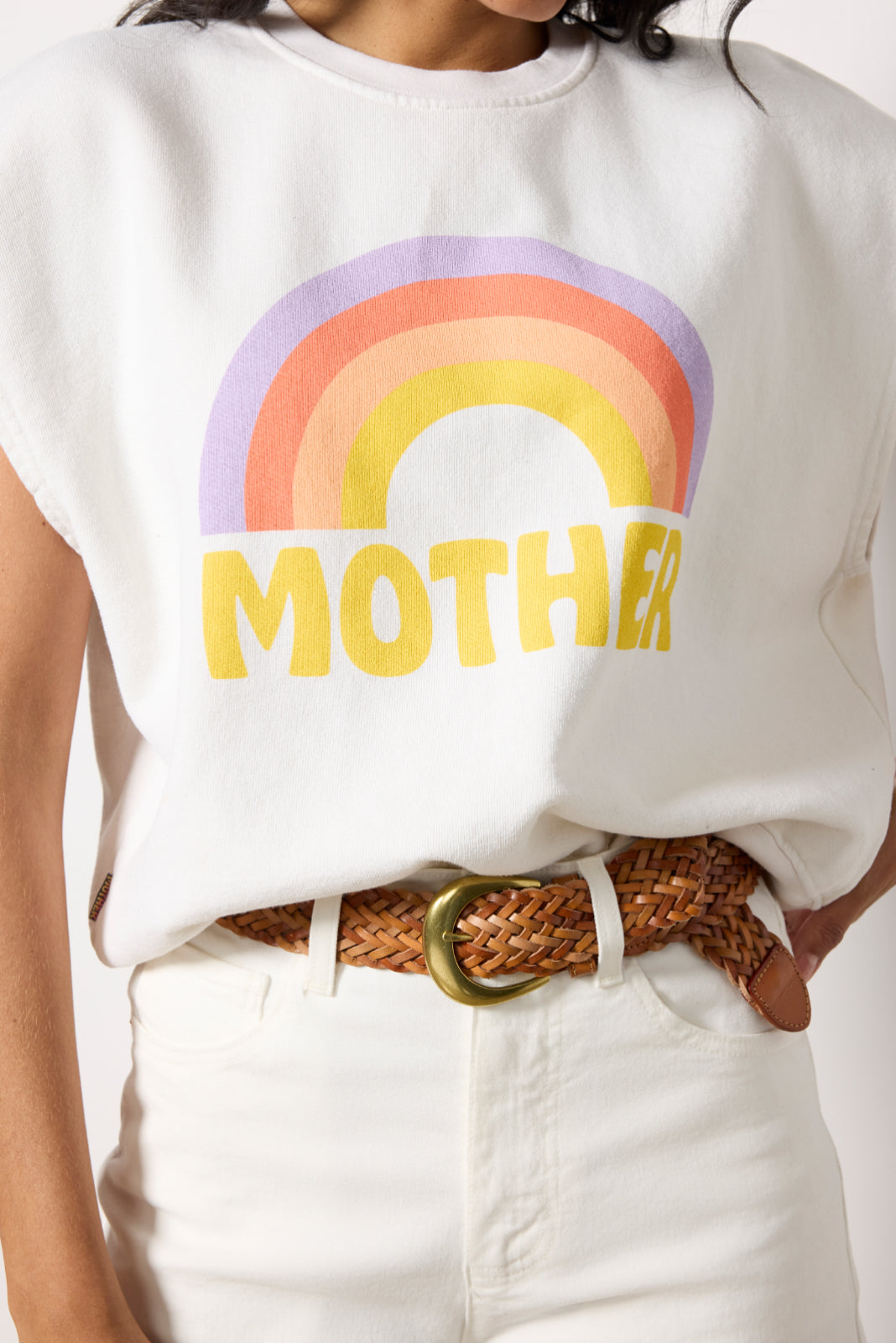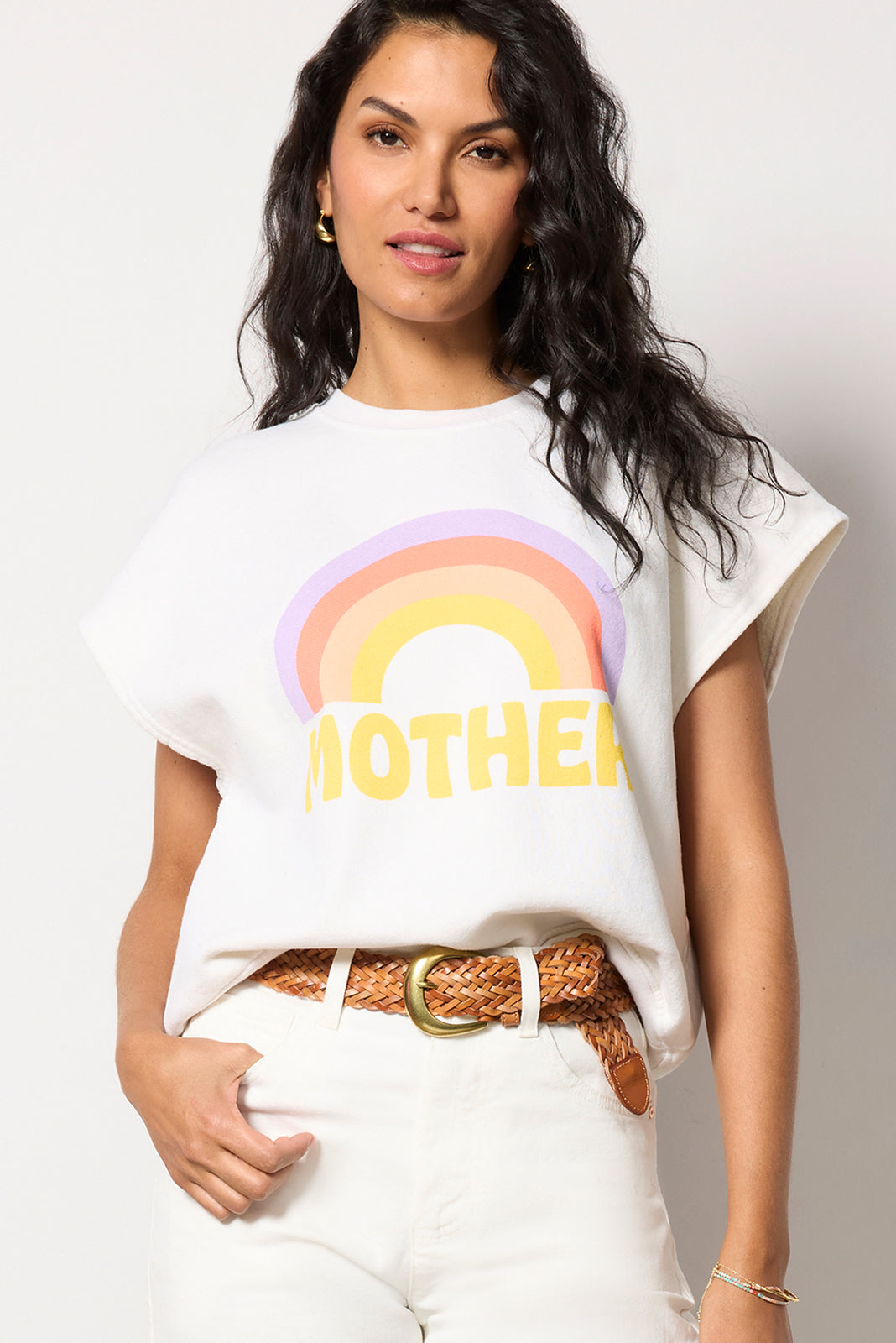 A rainbow graphicelevates this casual-cool sweatshirt by MOTHER. crafted in comfy cotton fabric with a relaxed fit. crew neckline. and short dolman sleeves.